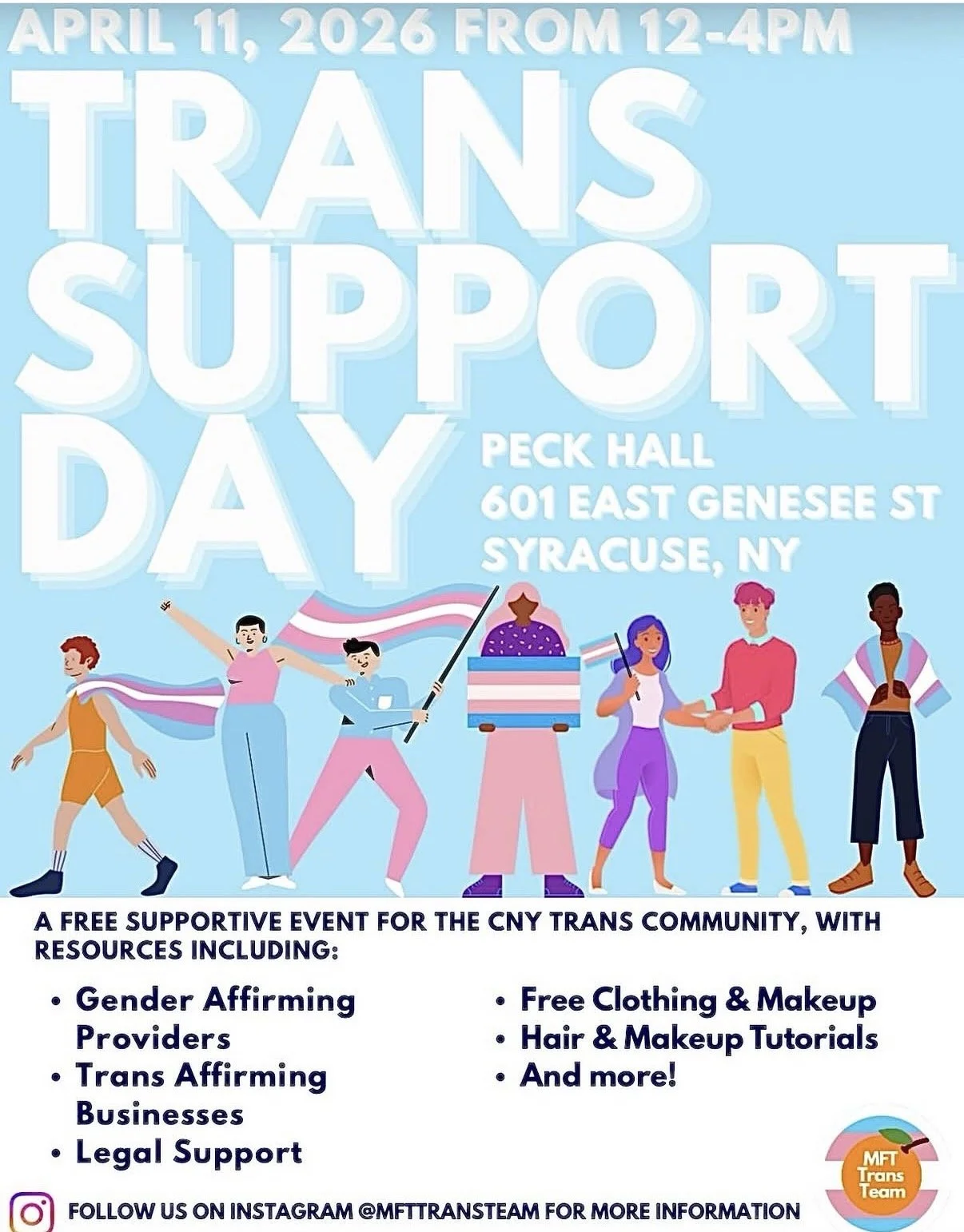 Come Out CNY will be tabling at Trans Support Day, a free community event hosted by MFT Trans Team for the Central New York trans community!